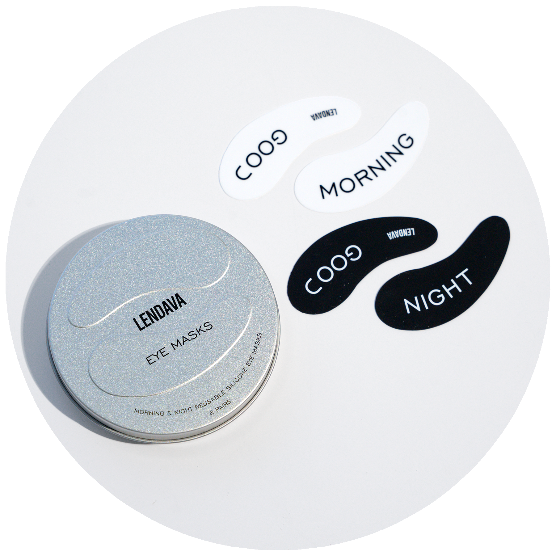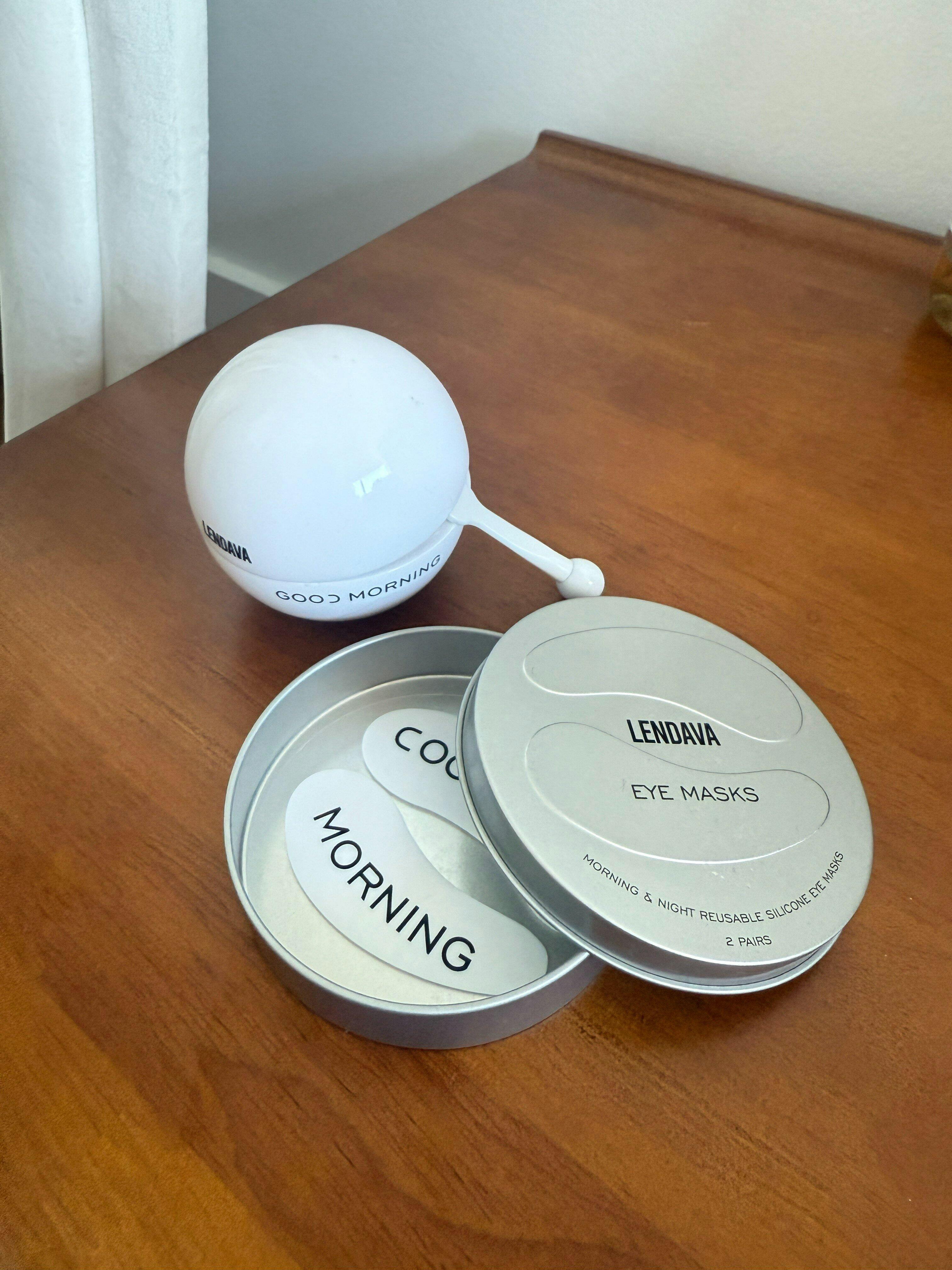 Apply Good Morning or Good Night Face Cream to clean, dry under-eye skin using the ball end of the spoon. Place the matching eye masks for up to 20 minutes. Rinse, dry, and store them in the tin to reuse as often as you like.